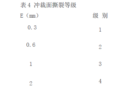 精沖零件沖裁面撕裂等級分為四個級別(見表4)。