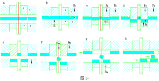 態(tài)中,在沖裁力PS作用下進(jìn)行沖裁。剪切區(qū)內(nèi)的金屬處三向壓應(yīng)力狀態(tài),從而提高了材料的塑性。